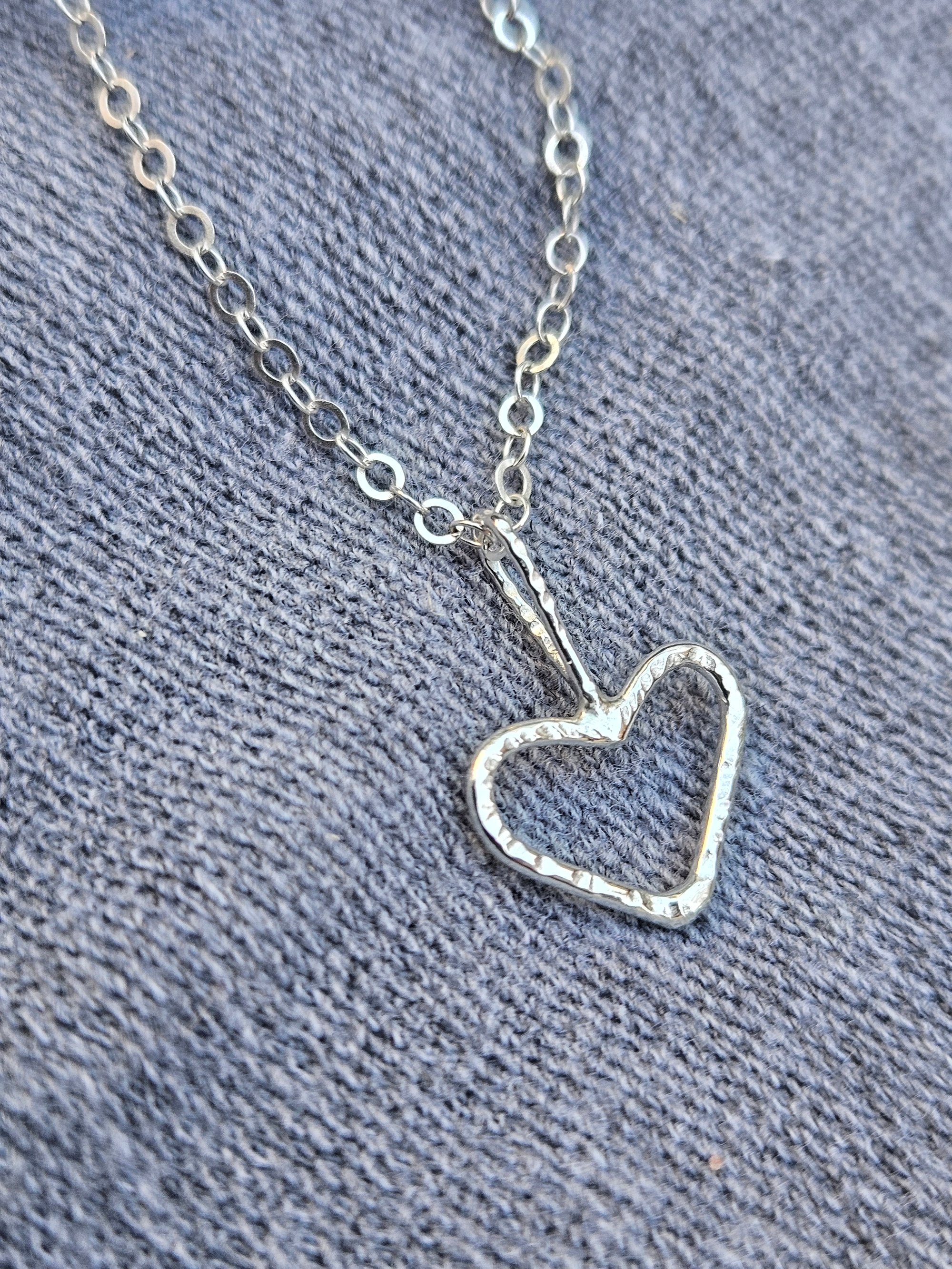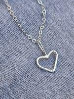 Handmade Sterling silver necklace featuring a handmade sterling silver wire heart and ive added a wire bail finished with my decorative texture on the wire.