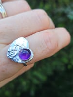 Custom request for a sterling silver initial ring. On this heart it will have a dark purple amethyst in 8mm bezel set into sterling silver on the top right hand side with a handstamped K on the opposite side and thats above above a handstamped heart.
