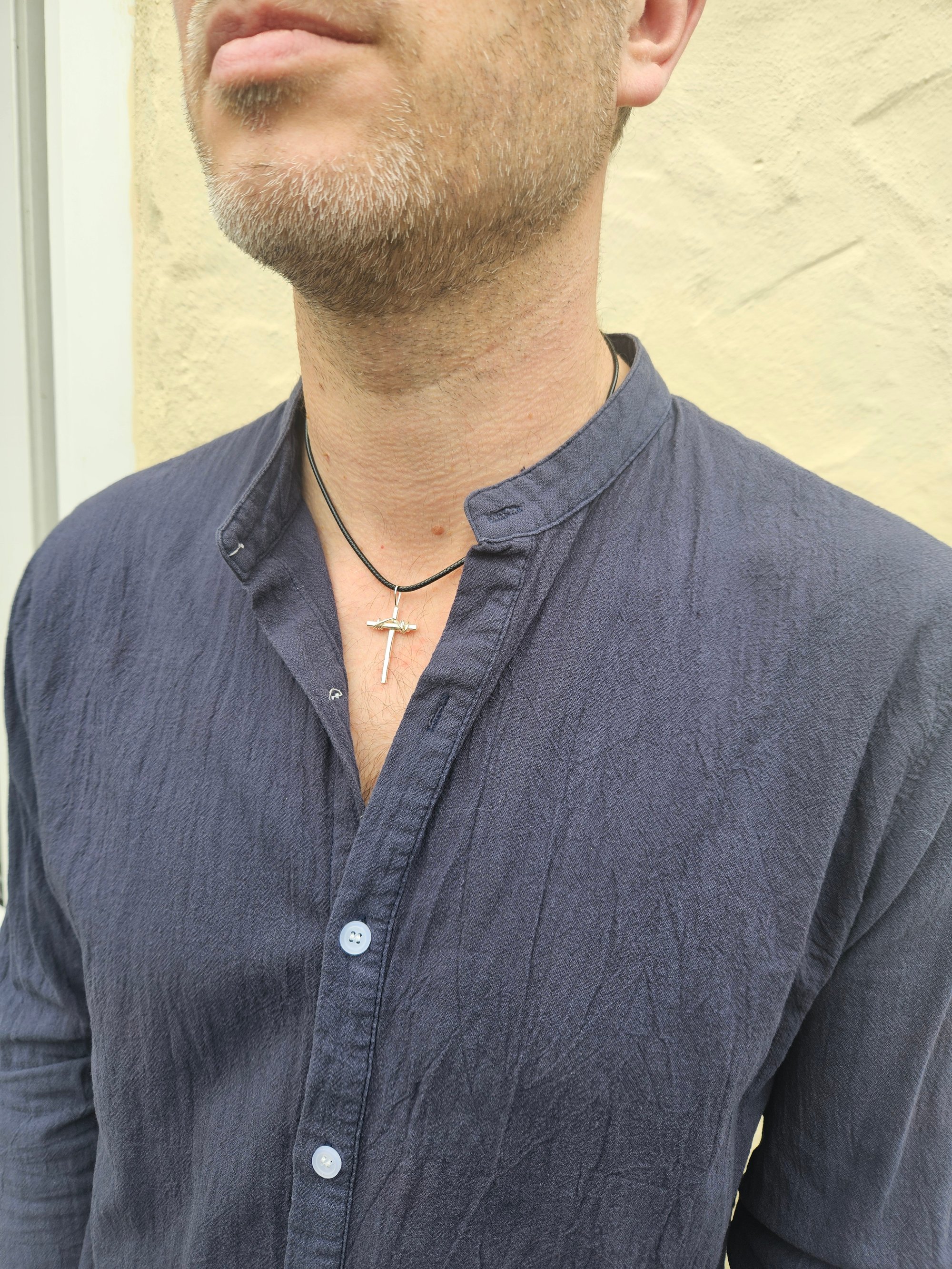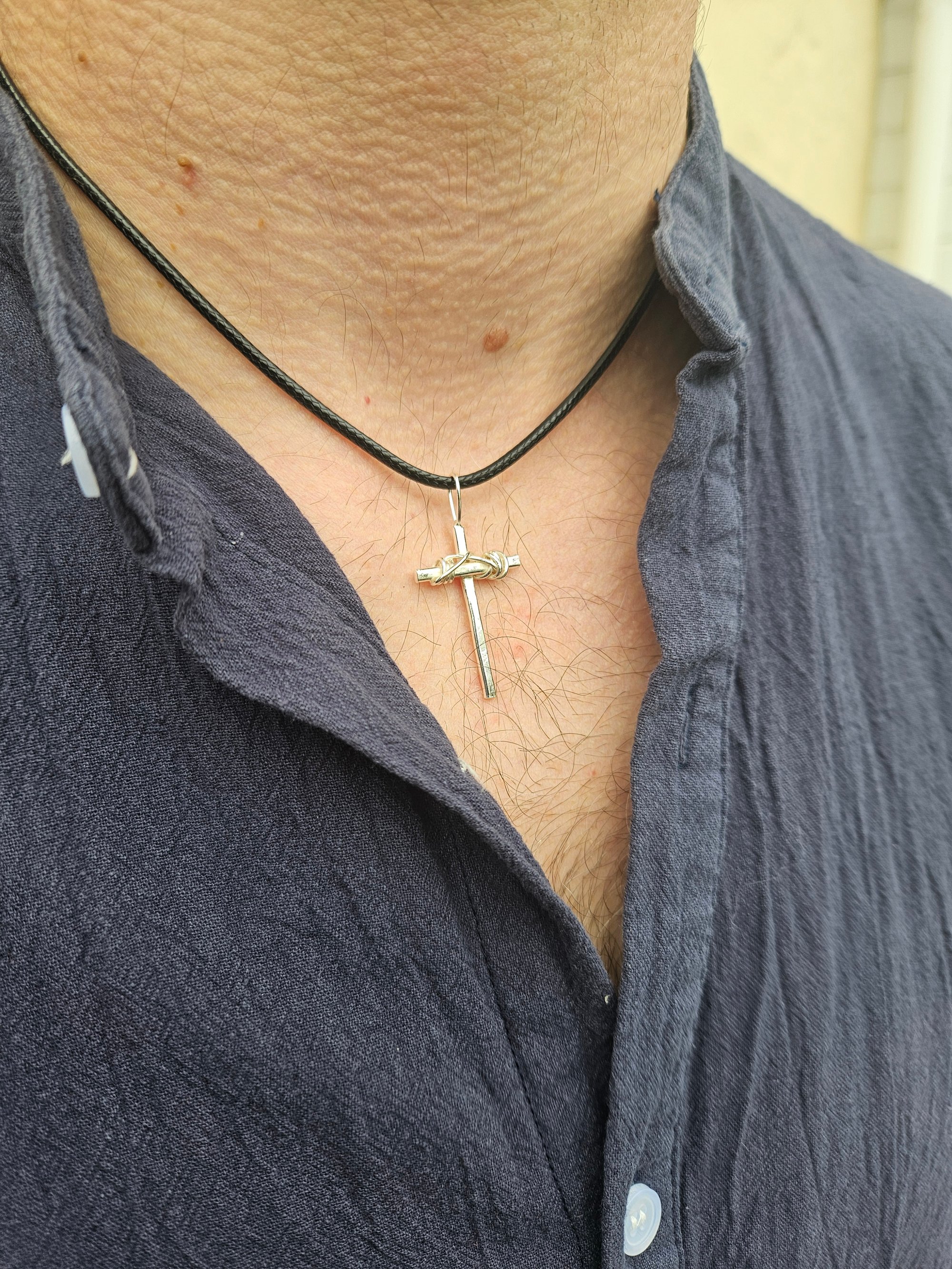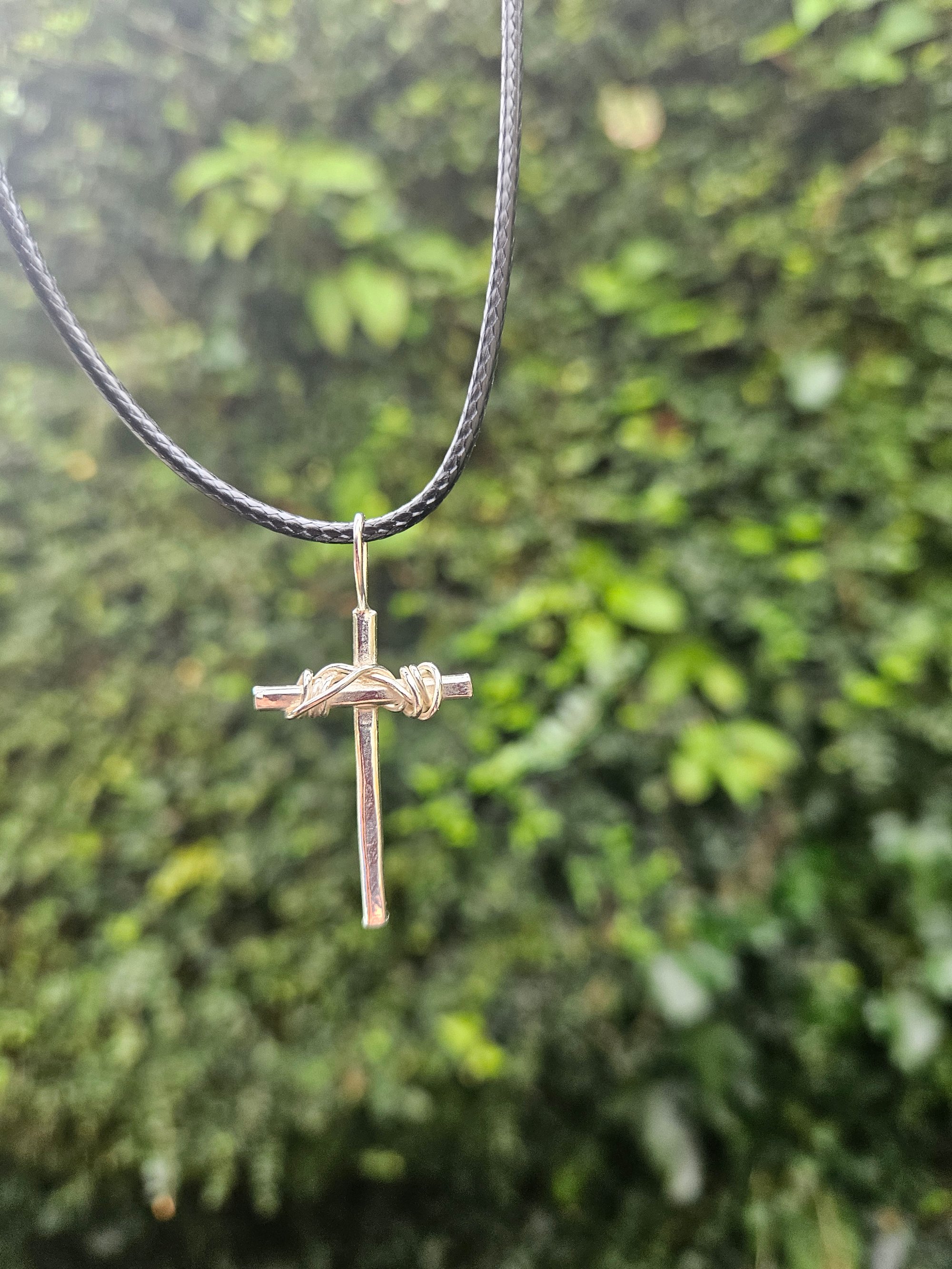 Mens Sterling Silver Cross Necklace ( with added wrapped wire )