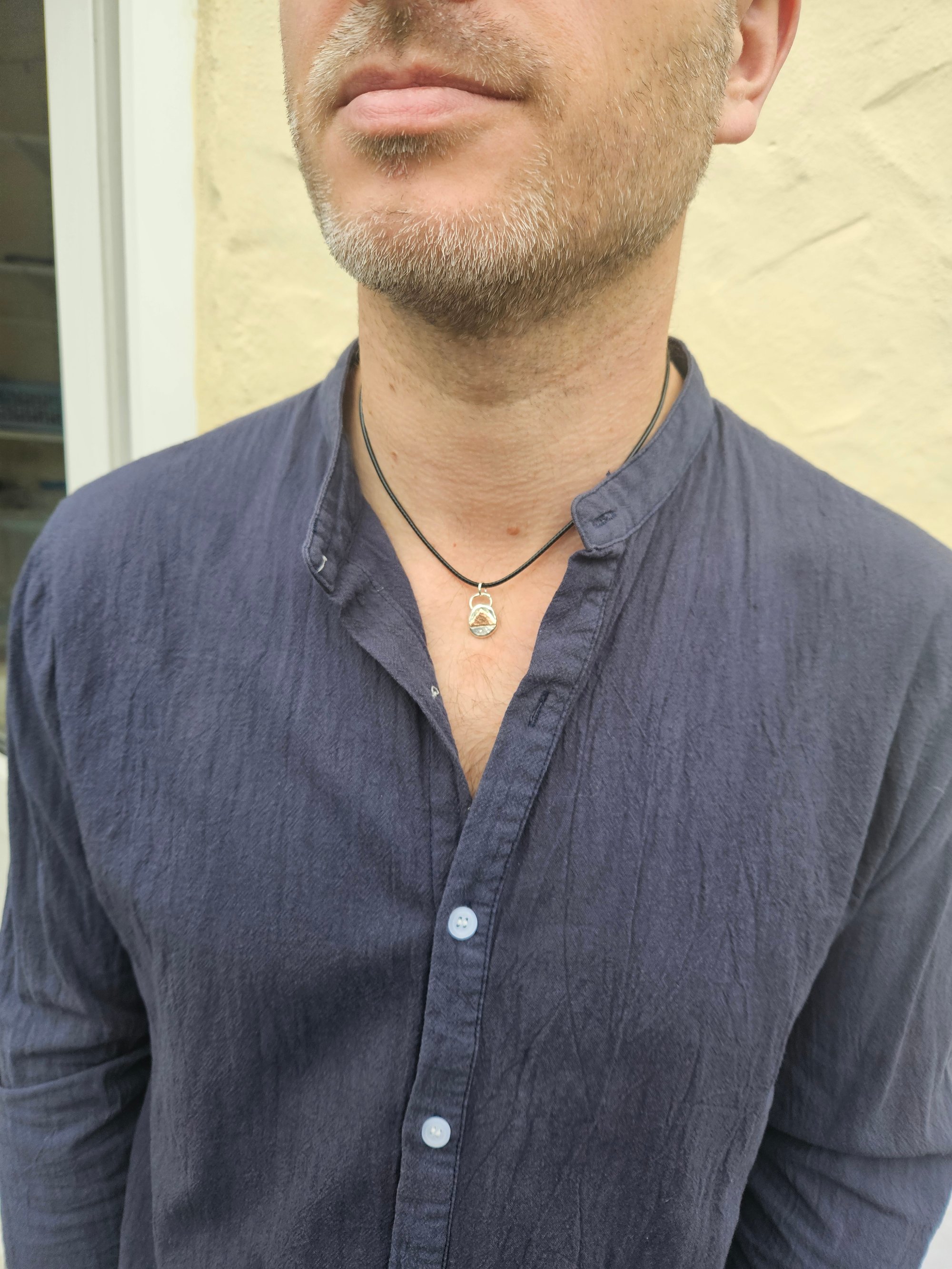 Please note this comes on a faux leather cord necklace which has a lobster clasp catch and is waterproof and durable. It is 2mm thick and 18 inches long but adjusts longer with the added extension chain so you can find the length you most prefer. The pendant also slides off if needed so you could swap it onto a favourite chain of yours if preferred!