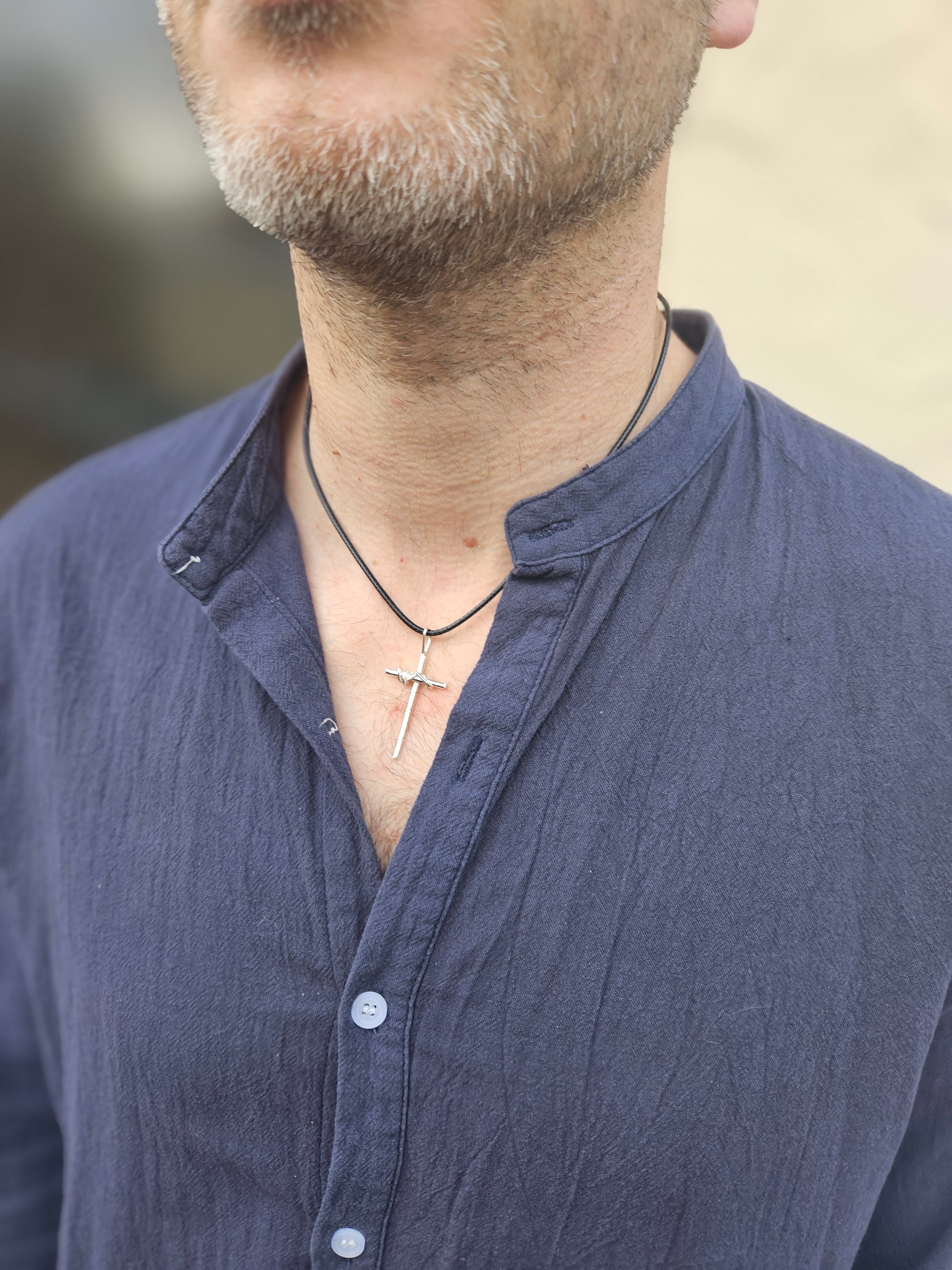 Made to order in 2 to 3 weeks - Mens Necklace - Sterling Silver Cross with added wire