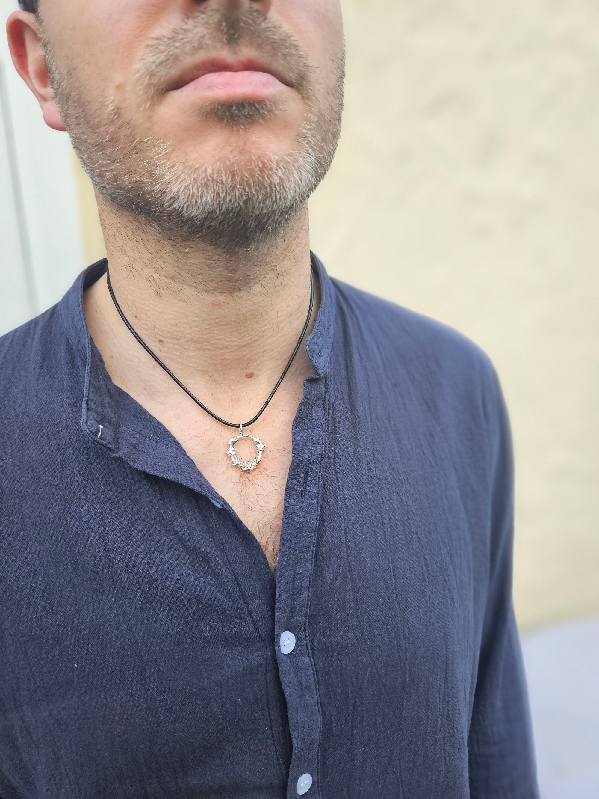 Mens necklace handmade by me featuring sterling silver wire that ive twisted into a really cool pendant using lots of different bits of sterling silver wire and sheet metal. Uniquely one of a kind.