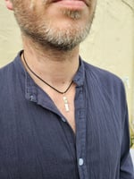 Please note this comes on a faux leather cord necklace which has a lobster clasp catch and is waterproof and durable. It is 2mm thick and 18 inches long but adjusts longer with the added extension chain so you can find the length you most prefer. The pendant also slides off if needed so you could swap it onto a favourite chain of yours if preferred!