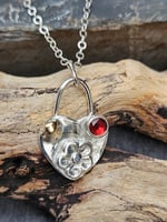 Sterling silver flower and heart Necklace- with 9ct Gold and Garnet