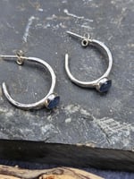 Stunning handmade sterling silver hammered hoop earrings made with thick sterling silver wire and they have beautiful blue kyanite gemstones bezel set in sterling silver 6mm settings. With Sterling silver posts and backs. The kyanite is a stunning stormy blue hence the name.